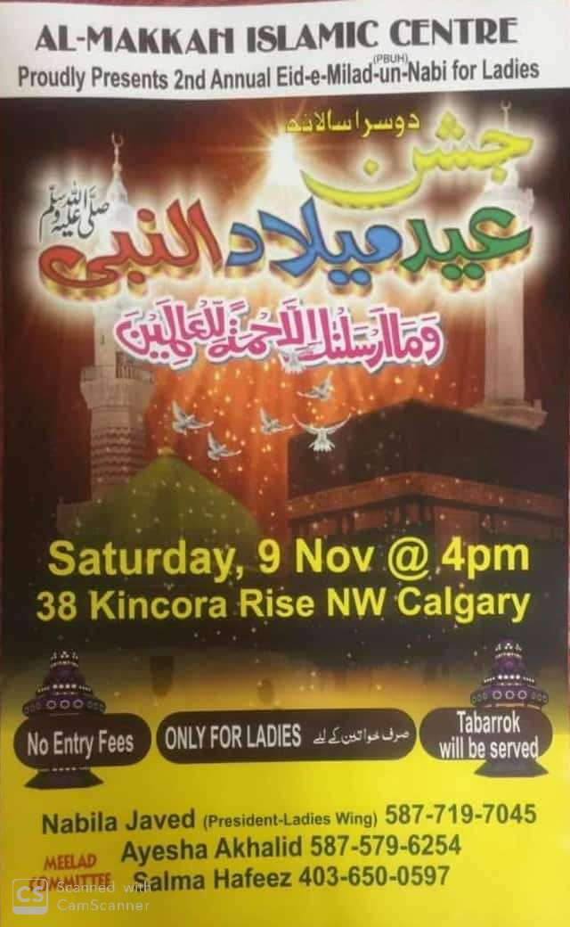 2nd Annual Eid-Milad-un-Nabi (S) Conference for Ladies – Calgary, Nov 9, 2019 0 By ISCC on October 24, 2019 Eid Milad-un-Nabi ﷺ Share. Twitter Facebook Google+ Pinterest LinkedIn Tumblr Email