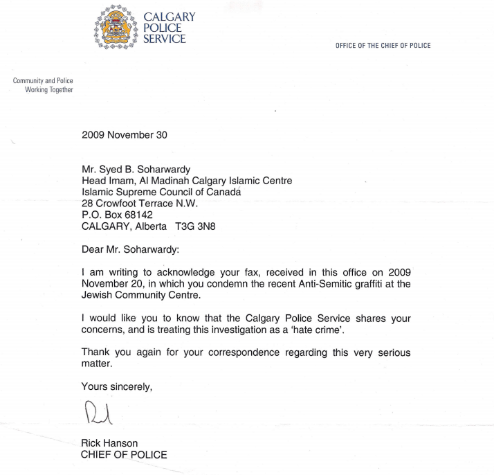 Chief of Calgary Police Supports Imam Syed Soharwardy’s Request on Hate Crimes 0 By ISCC on October 14, 2014 Community Relations Chief of Calgary Police Supports Imam Soharwardy’s Request on Hate Crimes Share. Twitter Facebook Google+ Pinterest LinkedIn Tumblr Email