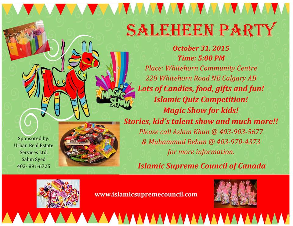 Saleheen Party | October 31, 2015 – Calgary 0 By ISCC on October 25, 2015 Events Share. Twitter Facebook Google+ Pinterest LinkedIn Tumblr Email
