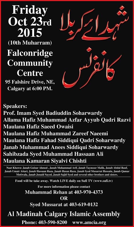 Shohada-e-Karbala (AS) Conference | Calgary – October 23, 2015 0 By ISCC on October 13, 2015 Events Share. Twitter Facebook Google+ Pinterest LinkedIn Tumblr Email